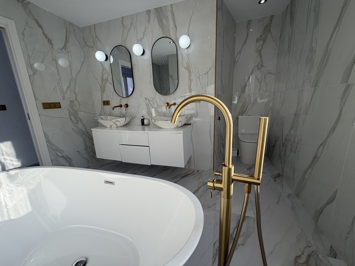The upper floor is dedicated entirely to an expansive master suite, featuring a luxurious en-suite bathroom with both bath and shower, as well as a large walk-in wardrobe(which can covert to the 6th Bedroom)—creating a true private retreat.