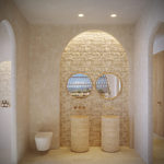 The interior of the villa is designed with a focus on comfort and modernity. Microcement floors add a contemporary touch and are easy to maintain, while electric shutters offer convenience and security. The villa is equipped with modern appliances, ensuring that all daily needs are met efficiently. The air conditioning system ensures a cool environment during the summer months, while underfloor heating provides warmth and comfort in winter. The layout includes a garage, adding an extra level of convenience and security for vehicles.