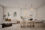 The interior of these townhouses in Los Alcázares is designed to offer maximum comfort and functionality. Each home features three bedrooms and three bathrooms, providing a spacious and well-distributed area for the whole family. The porcelain tile floors add a touch of elegance and are easy to maintain. The kitchen is equipped with modern appliances, facilitating daily life and allowing enjoyment of home cooking. Additionally, each townhouse includes air conditioning, ensuring a pleasant environment throughout the year. Built-in wardrobes offer efficient and organized storage, while the private garage provides convenience and security for vehicle parking.