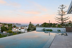 The exterior of the villa is designed to maximize enjoyment of the Mediterranean climate. It features a private garden that offers a perfect green space for relaxation or outdoor activities. The terrace is an ideal spot to enjoy the sea views, whether sunbathing or dining al fresco. Additionally, the property includes a private pool, perfect for cooling off during warm summer days. Access to a private garage ensures convenience and security for vehicles.
