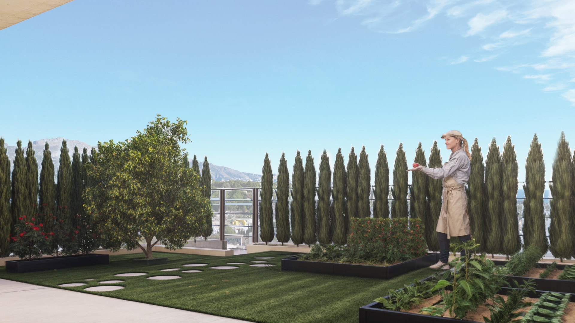 The properties feature spacious terraces and private gardens, ideal for enjoying the outdoors and the sunny weather of La Nucia. Additionally, each home has a solarium, offering extra space for relaxation or entertainment. A private pool in each property ensures fun and relaxation in the privacy of your home. The outdoor areas are designed to harmoniously integrate with the natural surroundings, providing an oasis of tranquility and beauty.
