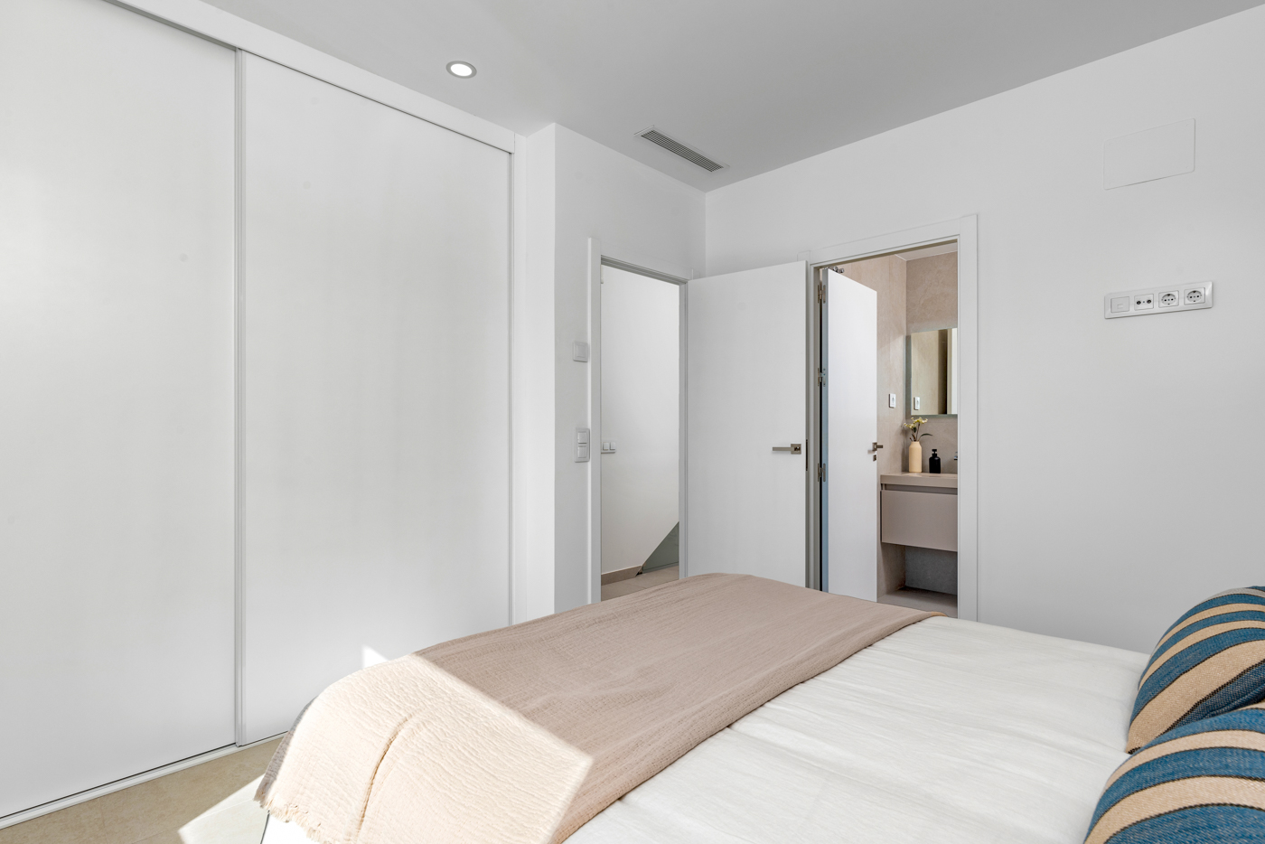 The interior of these detached villas is designed to offer comfort and functionality. With three bedrooms and three bathrooms, the homes are designed to meet the needs of families or groups seeking space and privacy. The built-in wardrobes in the bedrooms optimize storage, maintaining order and aesthetics. The inclusion of appliances in the kitchen facilitates daily life, allowing you to enjoy a fully equipped home from day one. Every detail has been considered to offer a welcoming and modern environment.