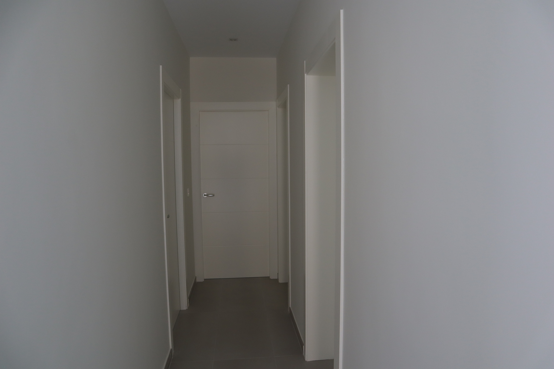 The interior of the villa is carefully designed to offer comfort and style. It features three bedrooms, making it perfect for families or those needing extra space for guests or an office. The two bathrooms are equipped with modern finishes. The porcelain tile flooring adds an elegant touch and is easy to maintain. Electric shutters and air conditioning ensure a comfortable environment year-round. The kitchen is equipped with modern appliances, facilitating daily tasks. Built-in wardrobes in the bedrooms offer ample storage space, maintaining order and organization.
