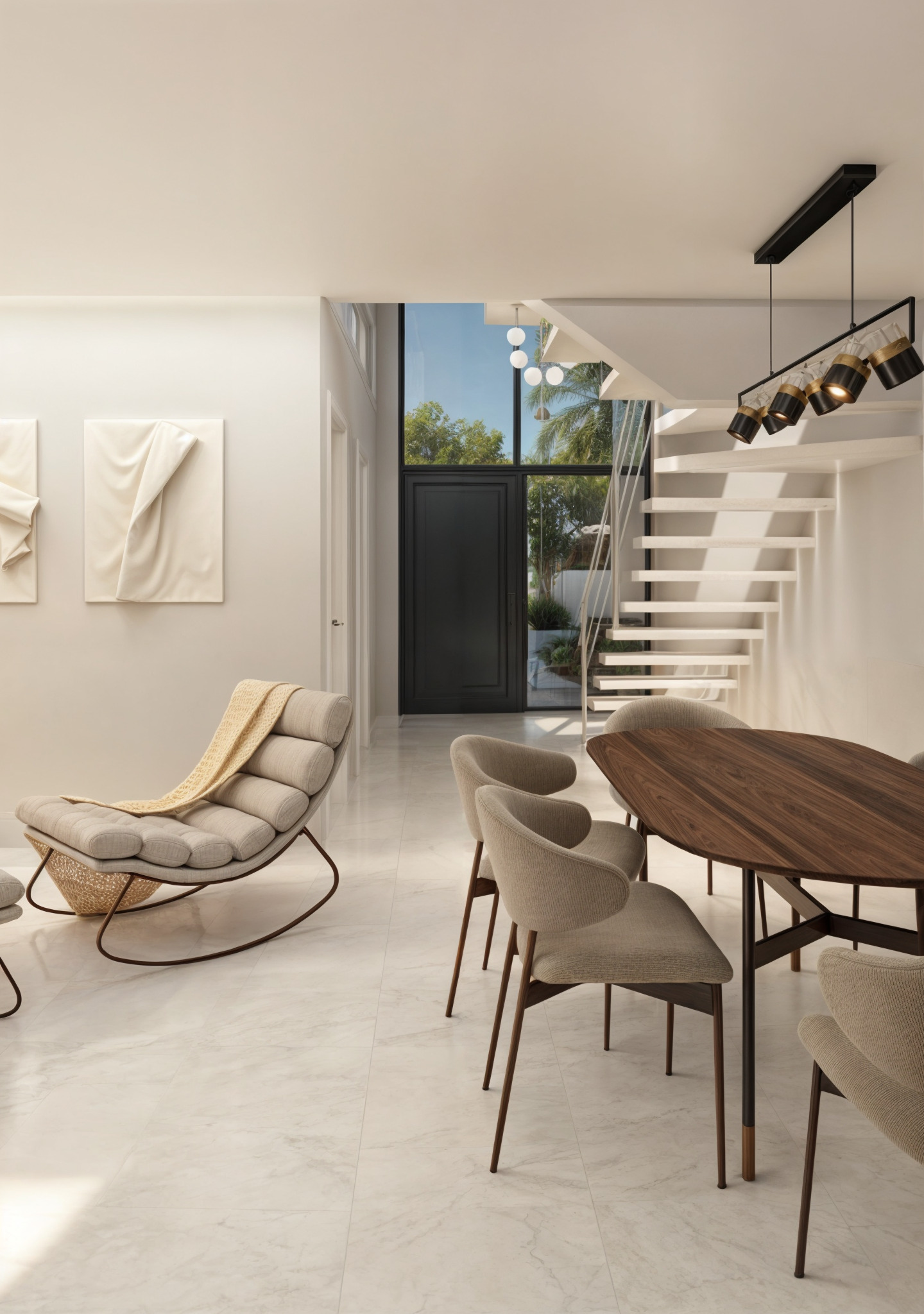 The interiors of these townhouses are carefully designed to offer a cozy and functional environment. With a layout that includes three bedrooms and three bathrooms, each space is optimized for the comfort of its residents. Porcelain tile floors add a touch of elegance and are easy to maintain. The inclusion of modern appliances and built-in wardrobes ensures that each home is ready to be lived in with all necessary comforts. Additionally, the video intercom provides extra security and convenience, allowing efficient control of access to the home.