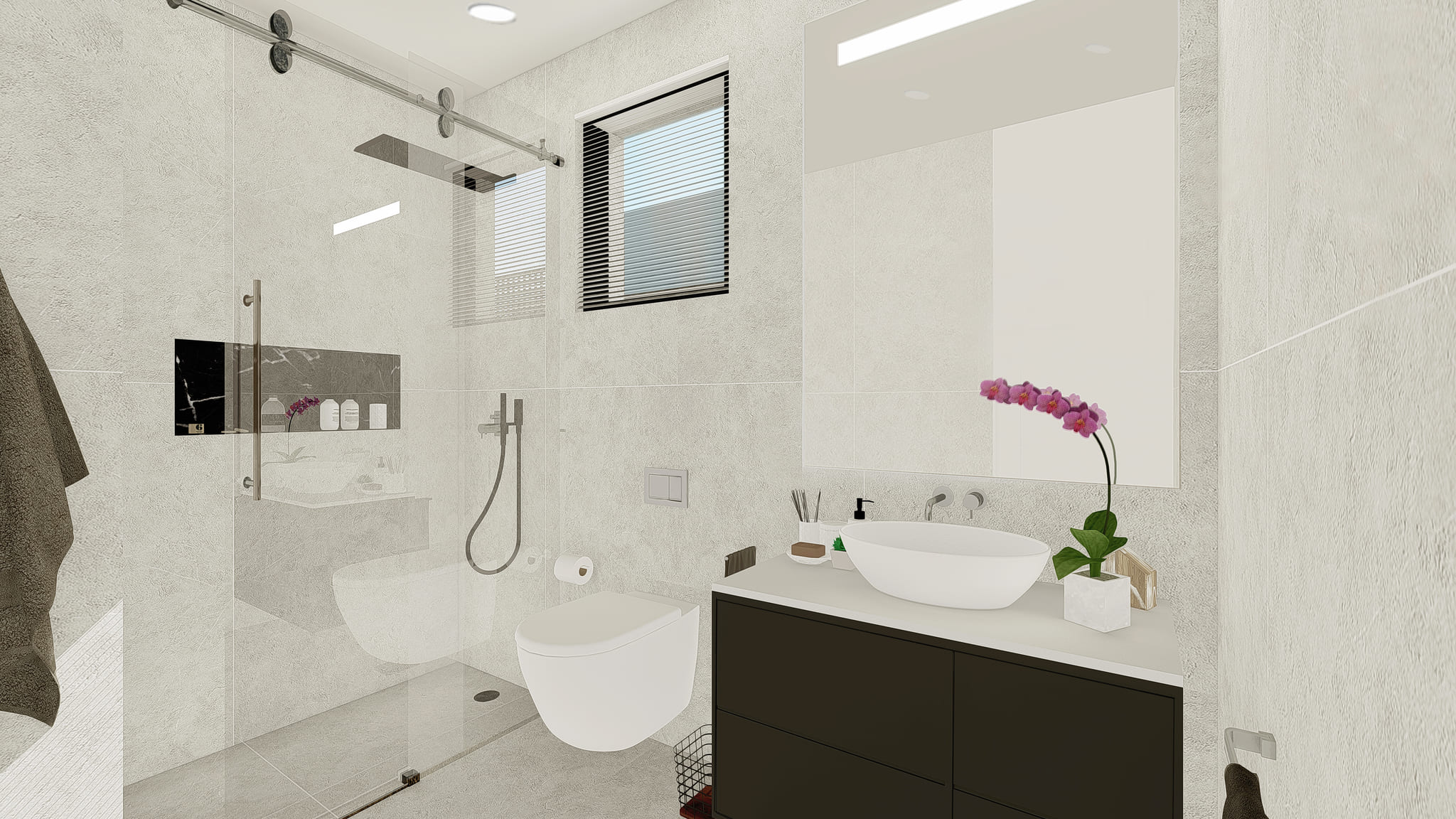 The outdoor spaces of these townhouses are designed to maximize enjoyment of the Mediterranean climate. Each property features a private garden, perfect for relaxation or outdoor activities. The presence of a private pool adds a touch of luxury and exclusivity, allowing for refreshing dips on the hottest days. Additionally, the terraces offer additional space to enjoy sea views, making them the ideal spot for outdoor dining or simply watching the sunset. The solarium is another attraction, providing an intimate space for sunbathing or enjoying panoramic views.