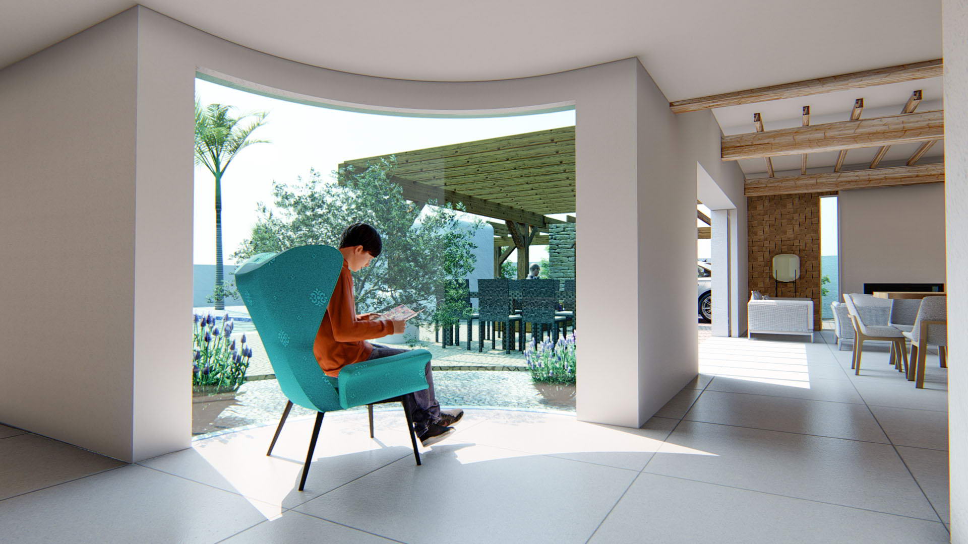 The interior of the villa is designed with attention to detail, offering comfort and style. It features three bedrooms, perfect for accommodating the whole family, and two well-equipped bathrooms. The ceramic floors add a modern touch and are easy to maintain. The property is equipped with air conditioning, ensuring a pleasant environment throughout the year. Appliances are included, making daily life easier. Electric blinds and the video intercom add an extra level of comfort and security. Built-in wardrobes offer ample storage space, keeping the home organized and clutter-free.
