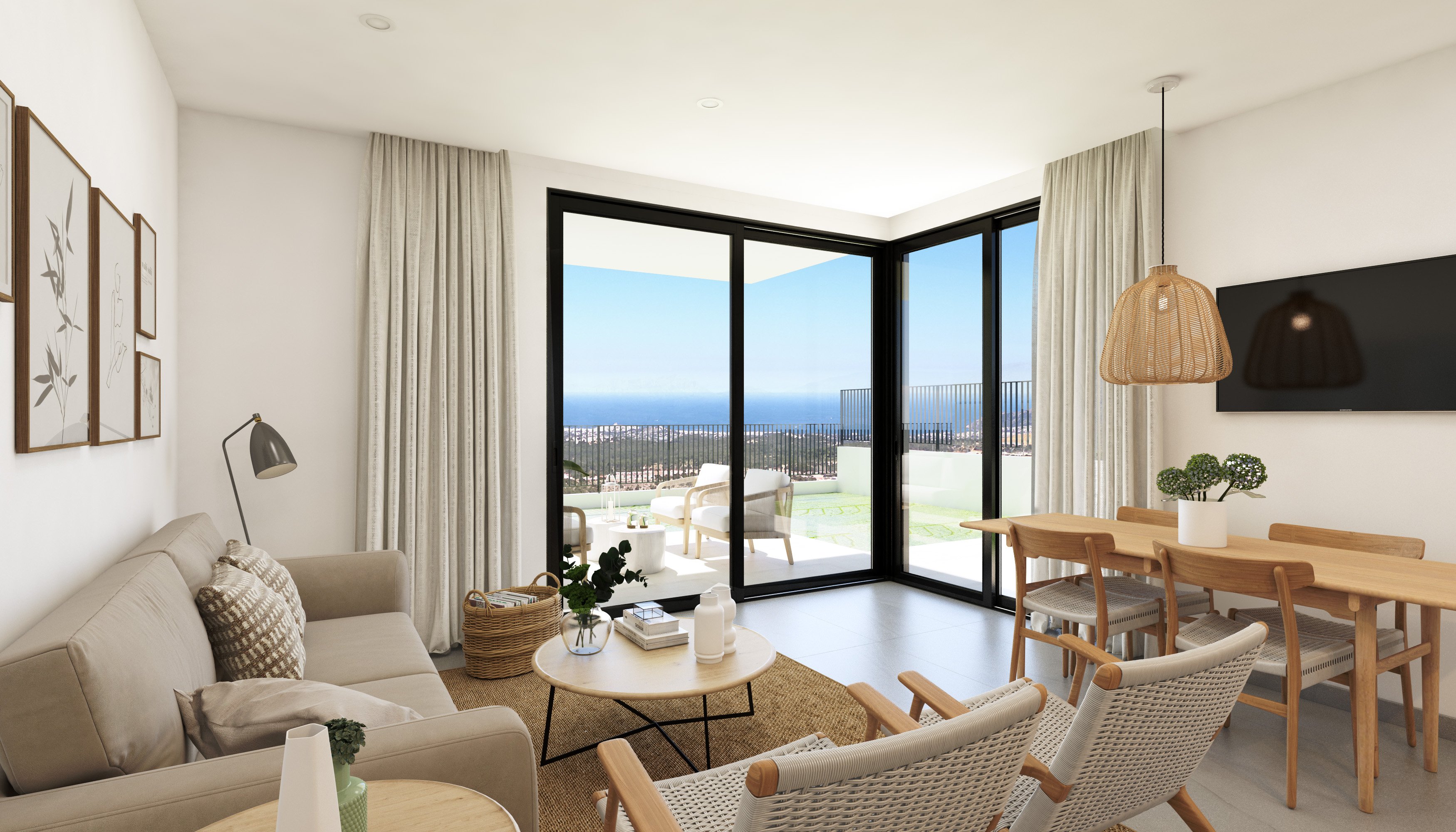 Located in the charming town of Polop, this residential complex offers 53 detached homes that stand out for their impressive sea views. The location is ideal for those seeking a tranquil environment without sacrificing proximity to essential services. Just 43 kilometers from the airport, the connection to other cities is quick and convenient, facilitating travel for both residents and visitors. The homes are designed to offer maximum comfort, with options of 2 or 3 bedrooms and 2 or 3 bathrooms, adapting to the needs of different family types.