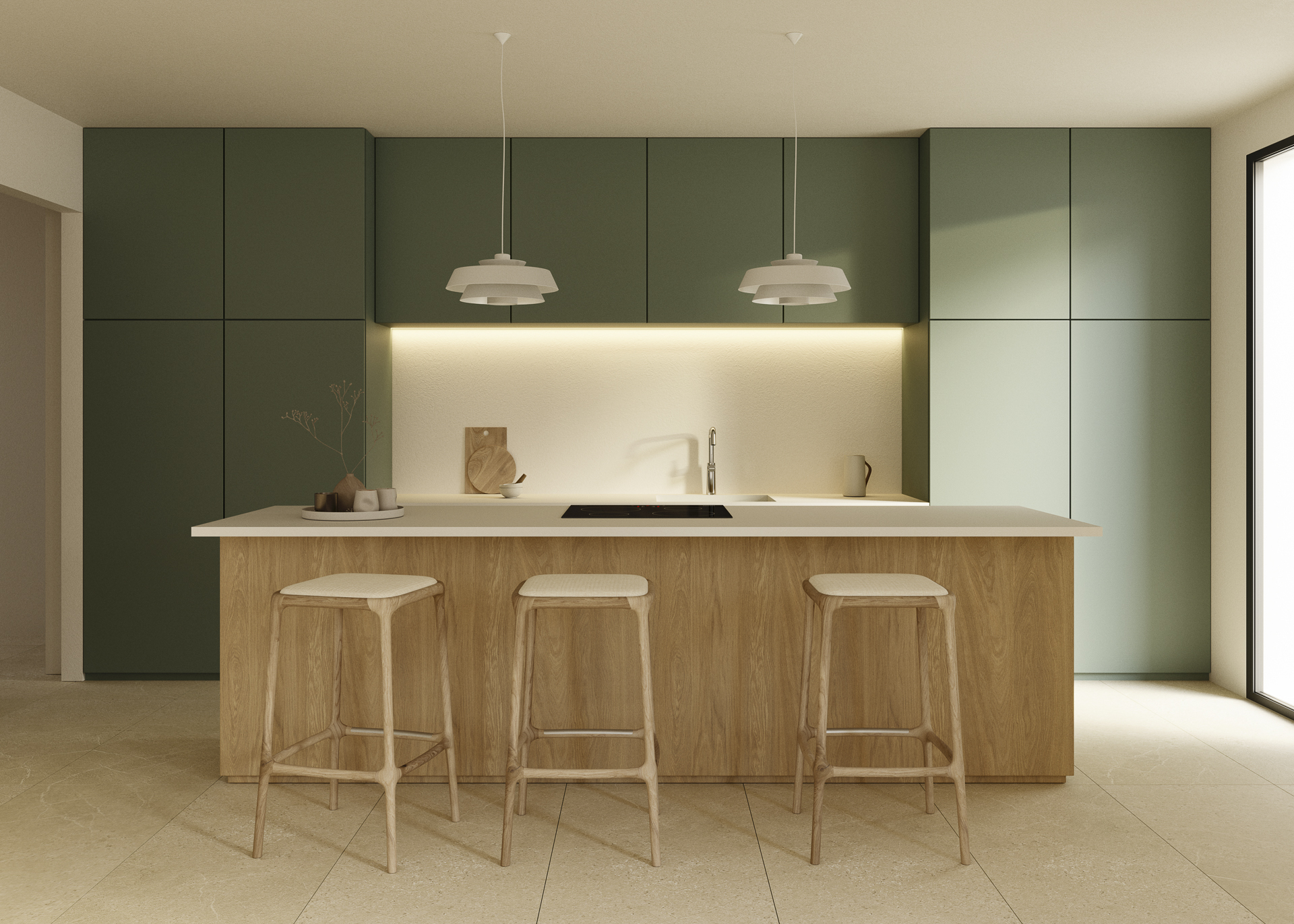 The interior of these detached homes in Polop is designed to offer maximum comfort and functionality. The porcelain tile floors add a modern and elegant touch to each room, while the built-in wardrobes in the bedrooms optimize storage space. The layout of the homes allows for a choice between three, four, or five bedrooms, and two or three bathrooms, adapting to the specific needs of each family. The option to include a solarium provides additional space for leisure and relaxation.
