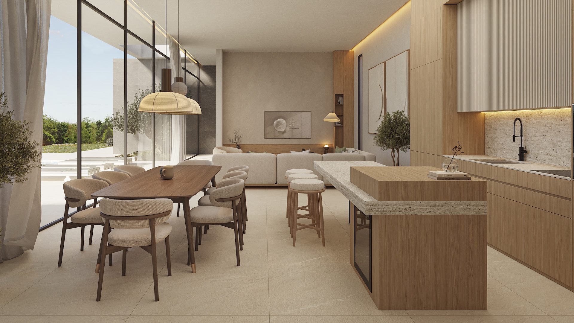 Inside, the villa is designed to offer maximum comfort. It consists of three bedrooms, providing a cozy space for the whole family. The two bathrooms are efficiently distributed to ensure residents’ convenience. Every space has been thought out to offer functionality and comfort, creating a welcoming and modern environment.