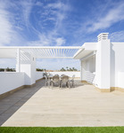 The exteriors of these properties are designed to enjoy the Mediterranean climate. Each bungalow has a private garden, perfect for moments of outdoor relaxation. Additionally, the terraces offer extra space to enjoy sea views and the natural surroundings. The inclusion of a solarium provides an ideal spot for sunbathing in privacy, while pergolas add a touch of elegance and shade, creating a welcoming environment for outdoor gatherings.