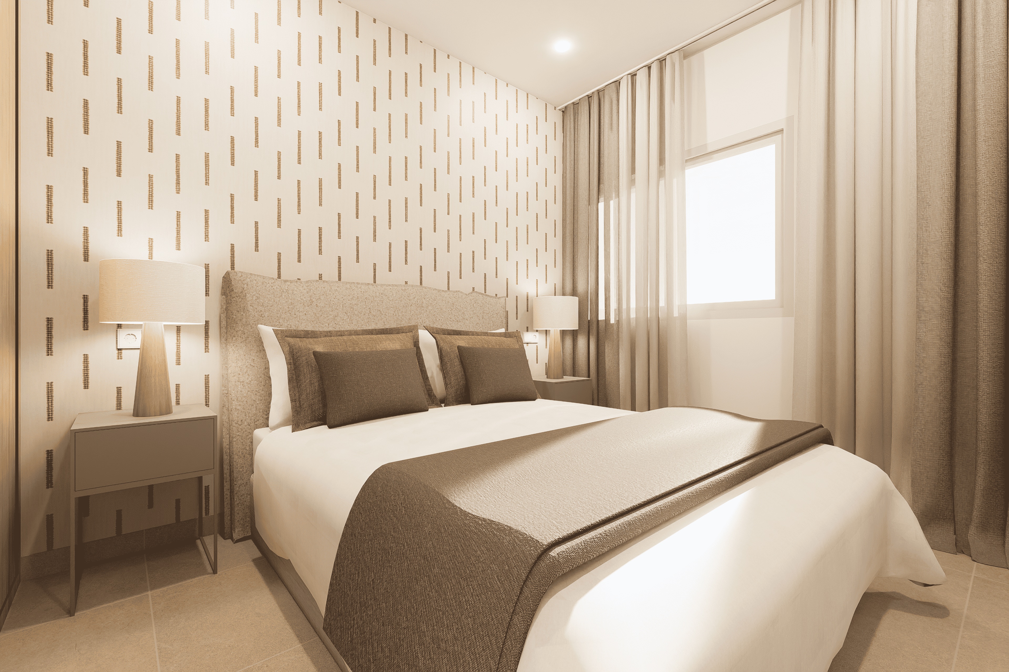 The exteriors of these homes are designed to maximize enjoyment of the Mediterranean climate. Each bungalow features a private garden, perfect for relaxing or enjoying outdoor activities. Additionally, the terraces provide extra space for leisure, allowing for enjoyment of the views and surroundings. For those seeking a more exclusive space, the solarium is an ideal option, offering a private place to sunbathe or enjoy starry nights. The presence of a garage ensures convenience and security for vehicle parking.