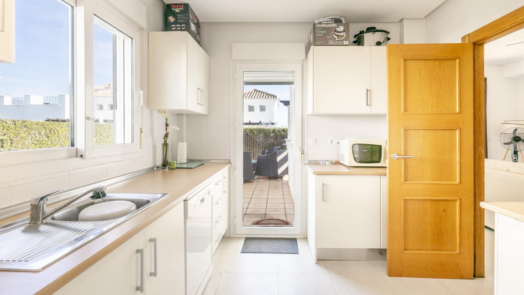 Fully fitted kitchen with a utility room and direct access to the garden for convenience.